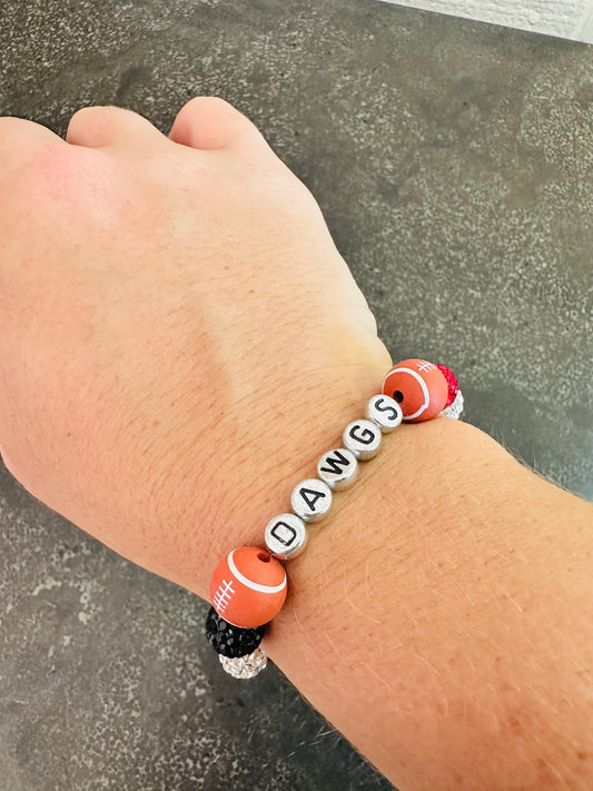 Dawgs Red, Black, Silver Rhinestone Beaded Bracelet